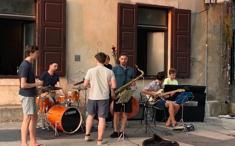 Keine großen Bühnen. Keine wuchtigen Scheinwerfer. Keine Parkette und Logen. Keine wummernden Verstärker. Jazz in Istrien klein, aber fein. In Pula, Bale, vor allem: Groznjan. Treffpunkt für junge Talente aus aller Welt. Tagsüber workshops. Abends spielen vor Publikum. Auf Plätzen unter Bäumen. Hinten wird Ćevapčići verkauft. Vorne legen sich die Musiker ins Zeug. Und das überzeugt. Musiker aus Kroatien und sonstwoher zeigen, dass es auch ohne Kraft bekannter Namen geht. Dass Kraft aus dem Spaß am Instrument wächst. Und dem Feilen am eigenen Können. Am Harmonieren und Experimentieren. Folklore flankiert Freejazz. Das heimische Akkordeon im Zwiegespräch mit Beat und Swing. In einer Atmosphäre, die klangvoller nicht sein könnte. Abseits der großen Bühnen in Zagreb oder Split.