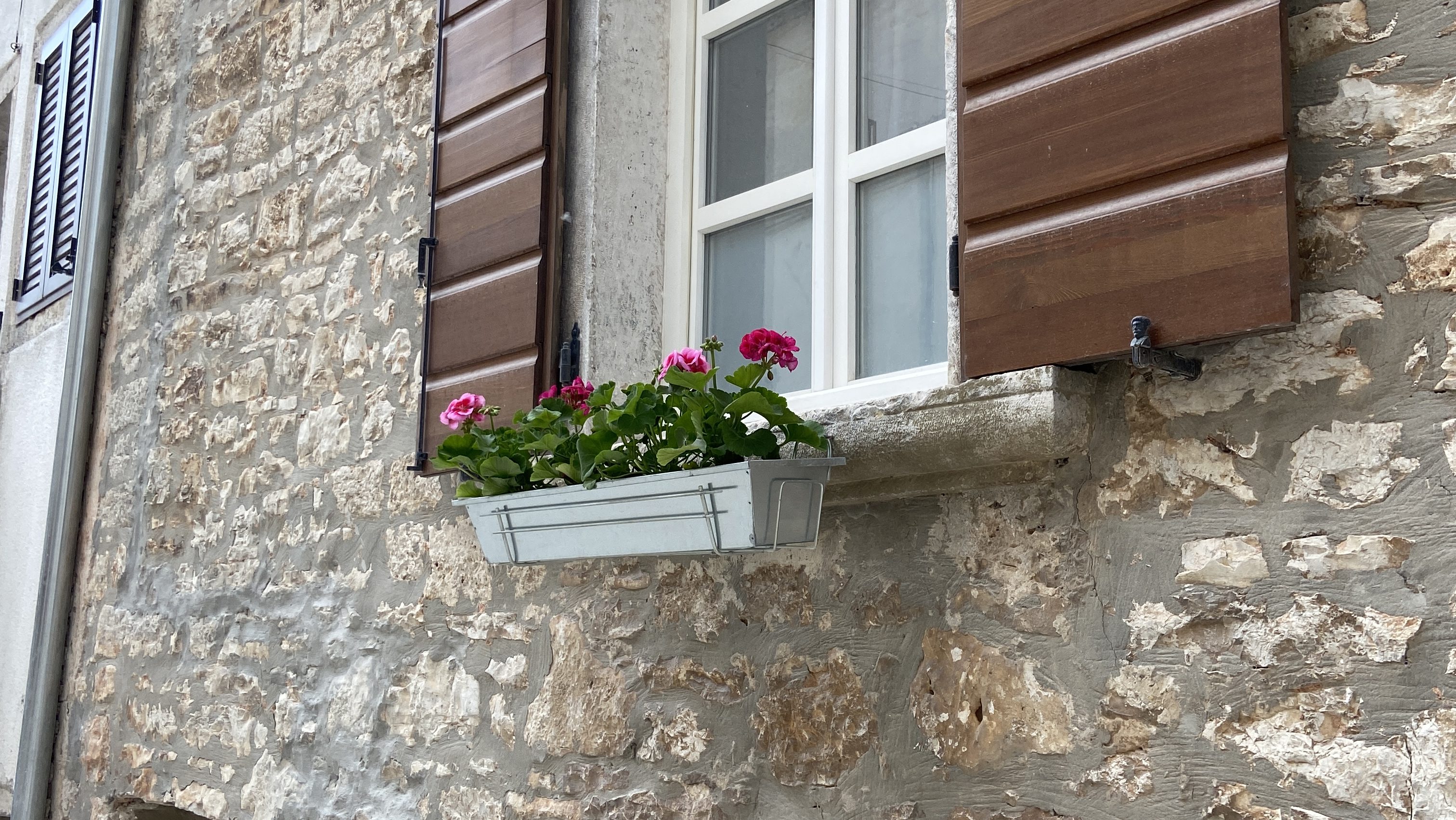 Es ist Ostersamstag. Zwischen Wolken mischen sich Sonnenstrahlen. Lichtblicke. Auch am Haus. Und um das Haus herum. Wir können wieder Blumen in Töpfe, Schüsseln, Kästen pflanzen. Nachdem Herbst- und Winterwinde das Bunte vom vergangenen Jahr zerzaust haben. In Istrien wehen die Winde bisweilen heftig. Krachende Gewitter. Prasselnder Regen. Wir dachten, das Wetter würde hier zaghafter mit uns umgehen. Falsch gedacht. Frühjahr und Sommer sind anhaltend schön, es wird heiß. Und trocken. Das hat die Region dem Norden Deutschlands voraus. In den anderen Jahreszeiten ist es allerdings ungemütlich.