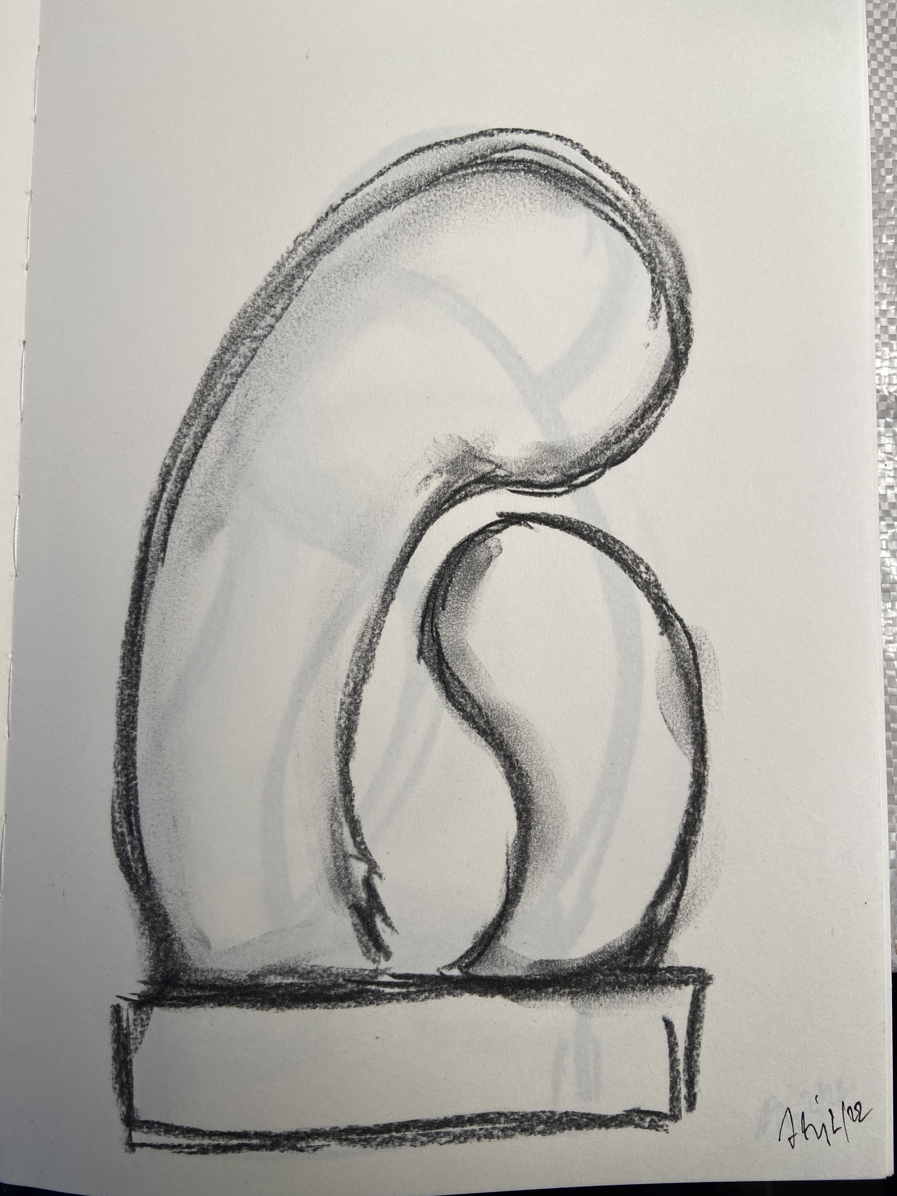 Aus dem Archiv gefischt. Figuren. Kohle. Vorlagen für Tonarbeiten. Skizzen des Da-Seins. In sich verwoben. In sich gekehrt. Mal Annäherung. Mal Verschlingung. Mal Kampfeslust.