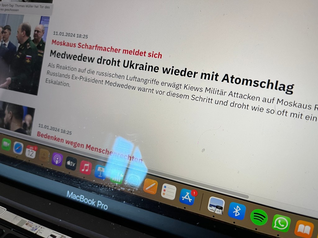 Was wäre, sollte Medwedews Atombomben-Drohung in einen echten Fall down münden, schlimmer: Eine radioaktiv verseuchte Ukraine oder die Donezk-Region an Russland? Die Frage ist übertrieben zugespitzt? Mag sein. Aber es gibt auch unterhalb dieser Zuspitzung derzeit, was den Krieg Russland-Ukraine, Ukraine-Russland, Putin gegen Selenskyj und umgekehrt betrifft, allen Grund, die Lage zugespitzt zu schildern, wie sie ist. Denn nichts deutet darauf hin, dass der Präsident in Kiew noch alle Tassen im Schrank hat. Sein Größenwahn wird dem seines Widersachers im Kreml immer ähnlicher. Und der Widerstand dagegen immer deutlicher.