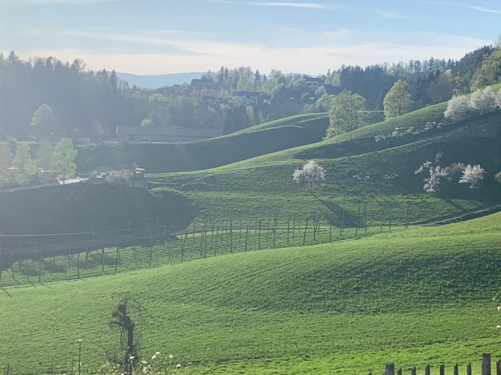 Der Kultursprung vom alles in allem verhärmten Istrien, das hier und da italienisch sein will, es aber nicht wirklich fertigbringt, ins steirische Austria ist gnadenlos wunderbar. Von der Toscana mag man viel schwärmen, von den Hügeln und den Zypressen darauf. So viele bezaubernd rebenbepflanzte Hügel wie südlich von Graz, so viele Wäldchen und immer wieder Lichtungen, lassen einem Augen und Herz aufgehen. Kaum ist man übern Berg, leuchtet schon, zwischen kleinen Wäldchen, der nächste Weinhang den Weg.