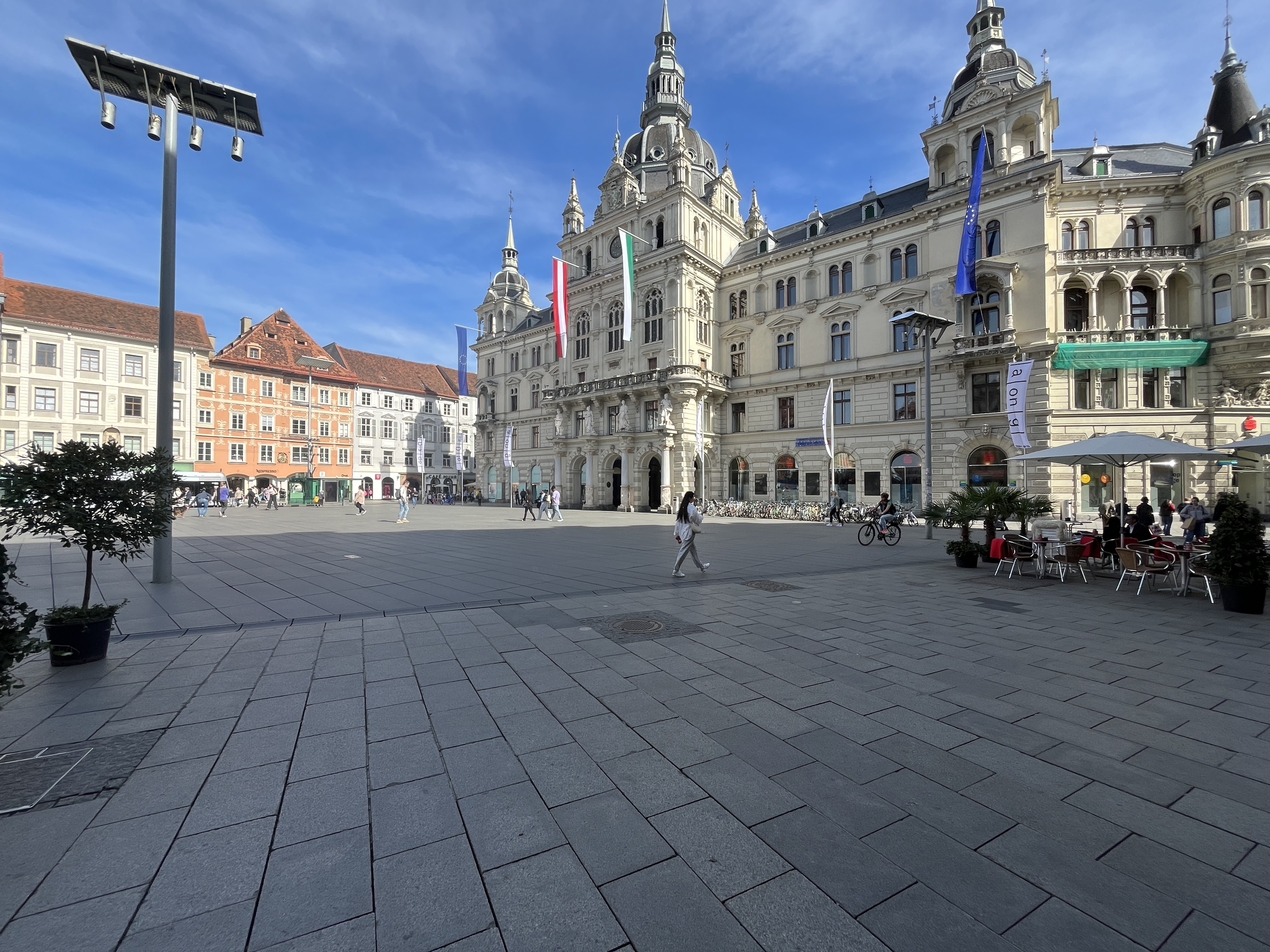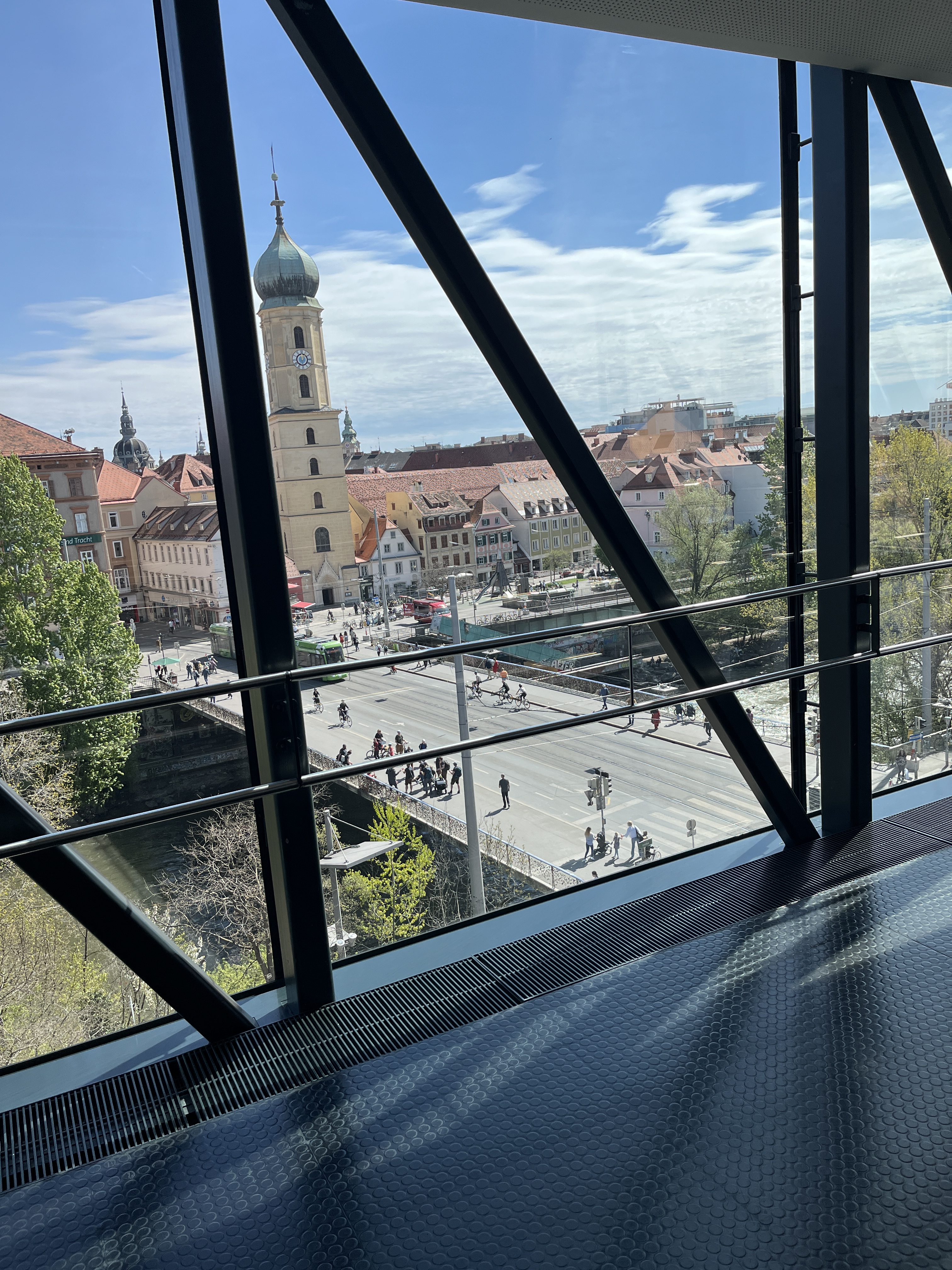 Zwischen Allem fließt die Mur. Die so quirlig ist wie die Menschen. Darf man zwischen den Ufern schwimmen? Besser nicht. Ein Schlauchboot, darinnen ein paar Mutige, wird von Stromschnellen hin und her geworfen. Von Weitem wirkt die Mur sanft. Aus der Nähe kraftvoll. Das ist in etwa auch die Melange, mit der sich beschreiben lässt, wie sich Graz anfühlt. Temperamentvoll. Schwankend zwischen weltoffenem Understatement und bodenständiger Lust am Leben. Da die Neugier, dort das Wissen, wer man ist, ohne wer sein zu müssen.