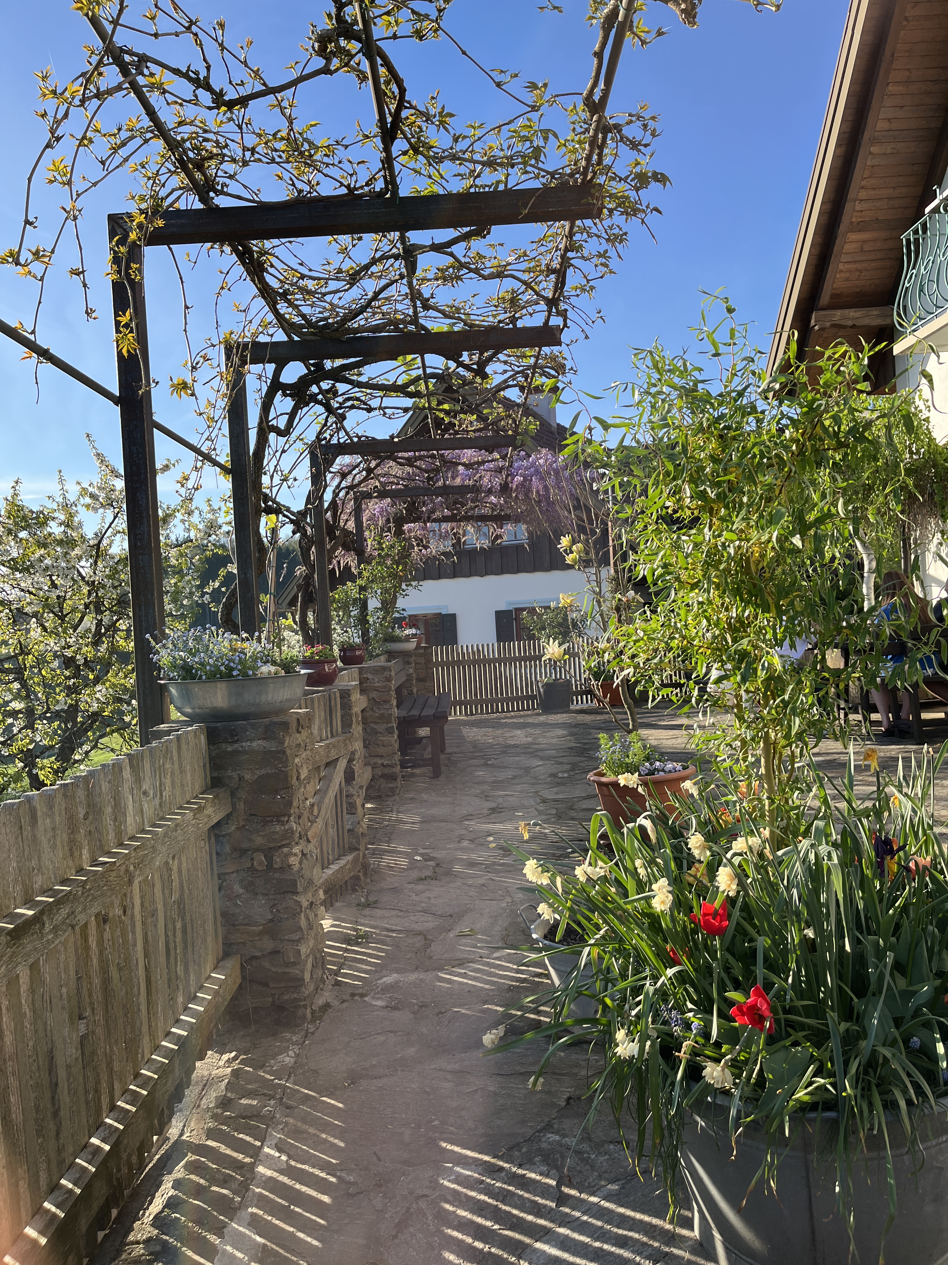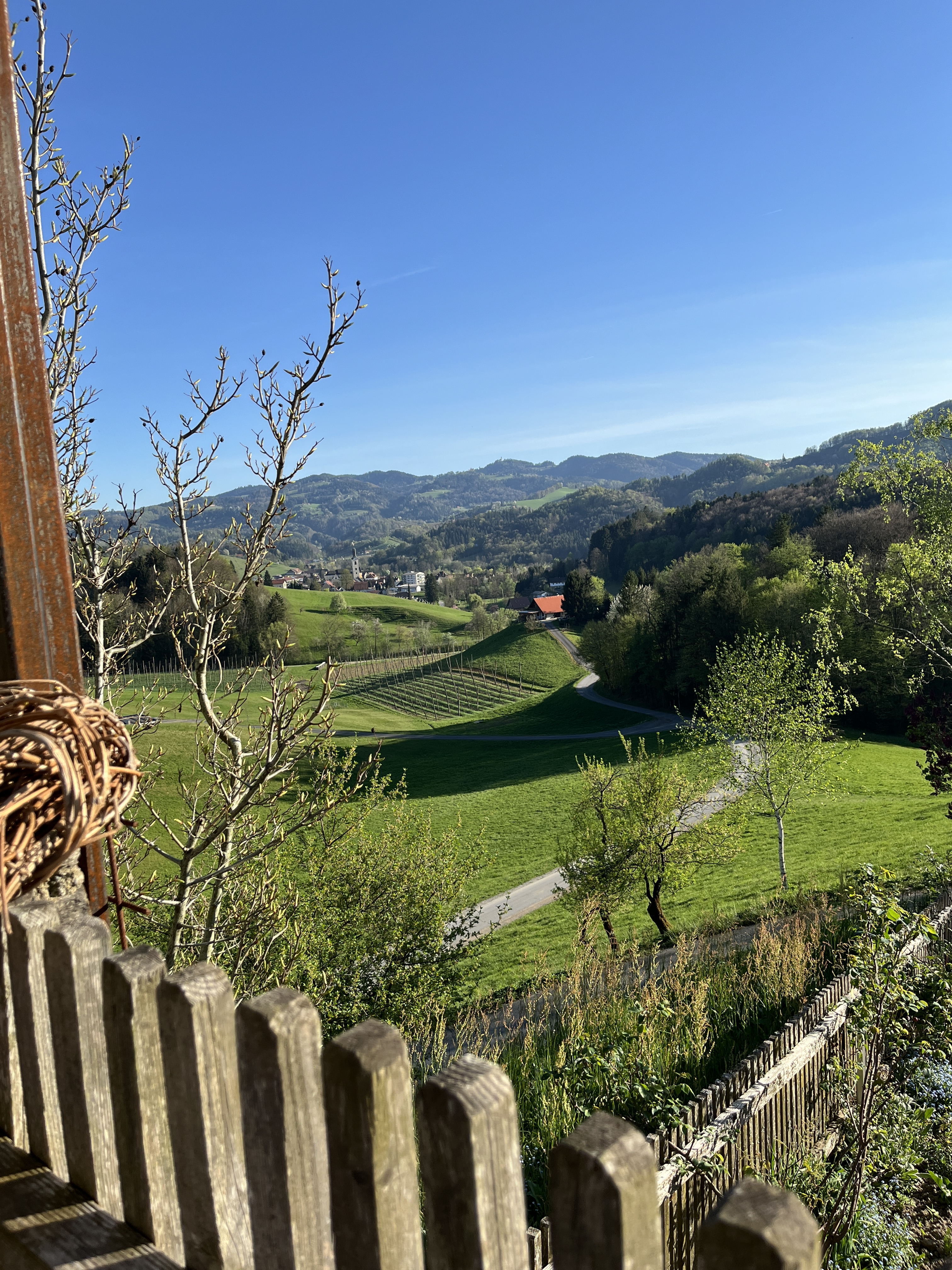 Das ist denn auch die Atmosphäre, die die Südsteiermark vermittelt. Es gibt, jedenfalls fühlte es sich auch nach genauerem Hingeben so an, nicht das Bestreben, etwas her machen zu wollen. Nichts Aufgesetztes. Es gibt nicht diese Art von Romantik, die schnell überläuft und zum Kitsch neigt. Zur Unwirklichkeit. Was einem gegeben wird, ist das Untrügliche, das Wohlsein beim Anblick der unverstellten Natur. Und den unverstellten Darbietungen darin. Da möcht man, wenn man daheim ist, gleich wieder umkehren.