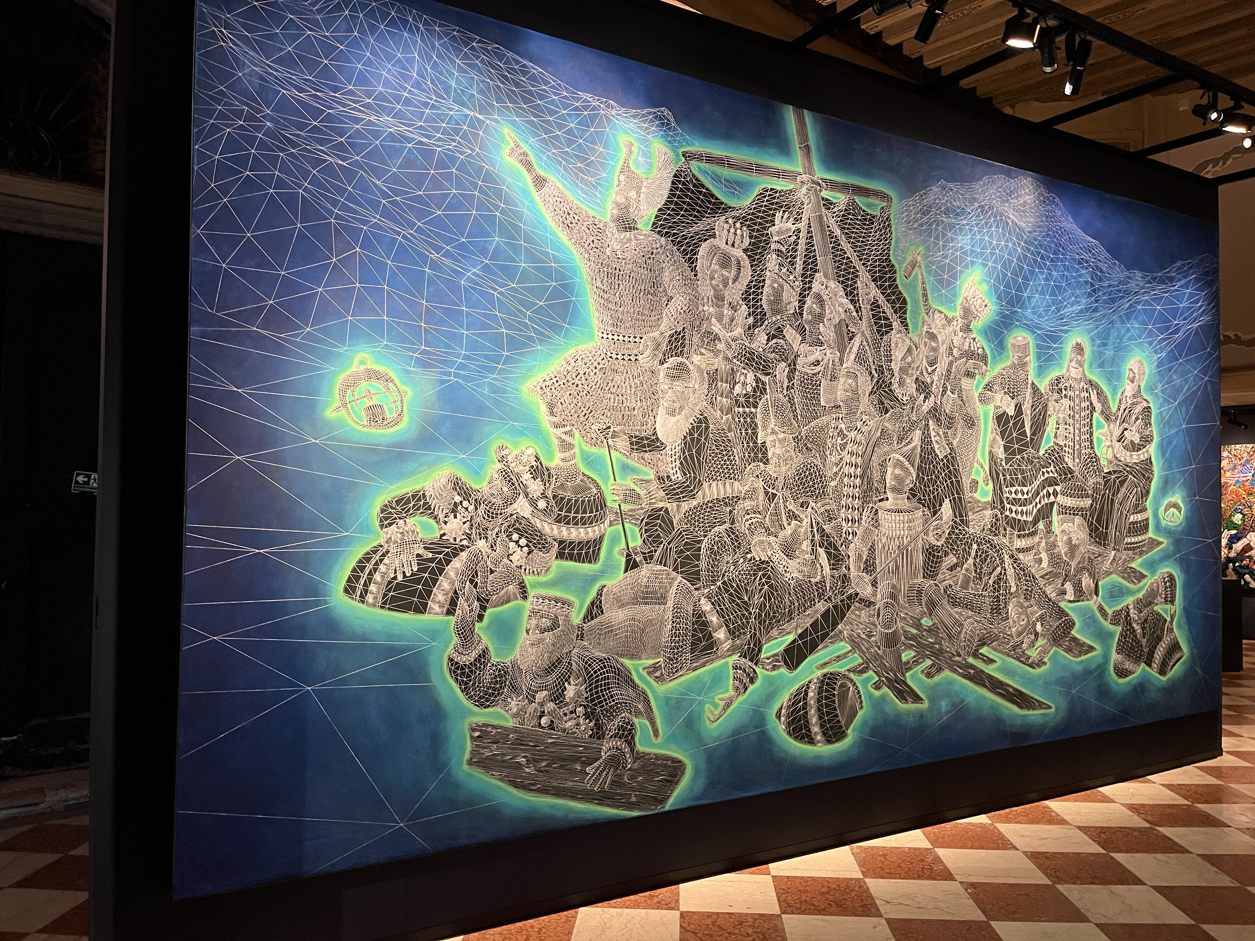 Zu Künstlerinnen und Künstlern hier kein Wort. Denn wo sollte man anfangen (und aufhören)? Nur soviel: Die Kritik an Foreigner Everywhere, so der Titel der diesjährigen Biennale, die ich im Vorhinein las, geht mir auch und gerade in den Post-Biennale-Stunden, in denen ich nochmal die Kunst Revue passieren lasse, gehörig auf den Zwirn. Es gab eine Menge sehens- und denkwürdiger Ansätze zu dem Thema. Selbst die Intension, die Kunst des Globalen Südens überhaupt einmal ins internationale Rampenlicht zu stellen, ist etwas wert.