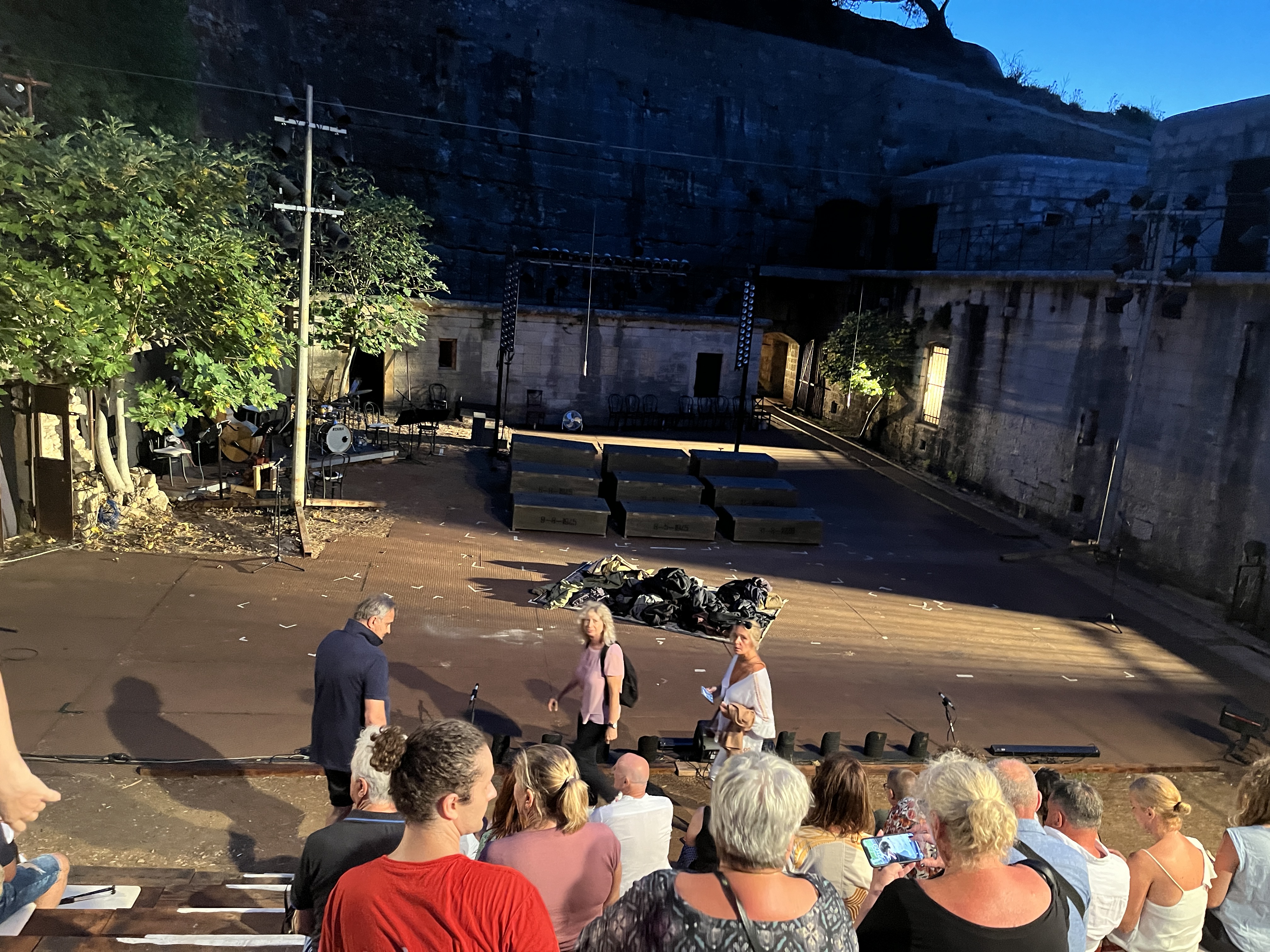 Das Stück mit der Musik von Kurt Weill ist seit jeher ein gesellschaftskritischer Gassenhauer. Auch auf der zweitkleinsten Insel der Brijuni-Gruppe muss man sich den Weg bahnen. Vom Fähranleger zum Fort Minor. Durch ein enges Tor. Eine kleine Steinschlucht, wenn man so will. Die sich zum Theater öffnet. Das Platz für rund 500 Besucher hat. Fast so viele sind es an diesem Abend. Brecht auf kroatisch. Mit an Mauern geworfenen englischen Obertiteln. Einer grandios spielenden Besetzung. Und einer kleinen, unüberhörbar tönenden Kapelle.