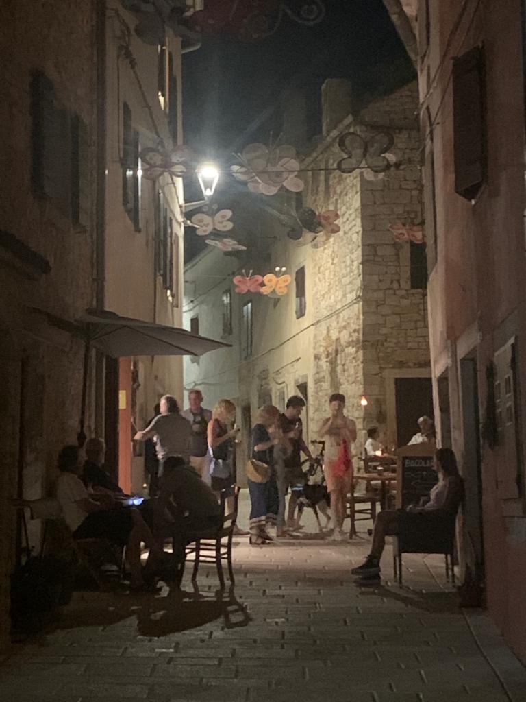 Das Borghetto. Blick abends aus unserem Fenster im zweiten Stock. Erst im vergangenen Jahr eröffnet. Und schon eine vielbesuchte Oase. Der schönen Gerichte. Des schönen Weins. Der angenehmen Atmosphäre. Der Ruhe. Anders als viele so genannte Konobas. Etwas Besonderes. Und das gleich in der Nachbarschaft. (Borgo ul. 9, 52211, Bale – 0915170145)