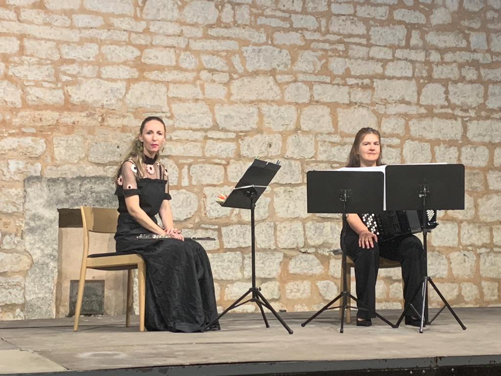 Duo Rapsodia – das sind Anamarija Lovrečić (Harmonika – Akkordeon) und Samanta Stell (Flöte). Zwei Musikerinnen, die vor allem mit klassischen Stücken bestechen. Unter anderem mit Bach-Werken, die sie kunstvoll für ihre beiden Instrumente arrangiert haben. In Bale haben sie erneut gezeigt, wie wundervoll das auch in kleiner Besetzung klingen kann. Schade, dass an diesem Abend nur wenige Menschen den beiden Virtuosen Gehör geschenkt haben. Sie hätten genauso ihr (größeres) Publikum verdient, wie der zwei Tage zuvor eher langweilige, mittelmäßige Jazz der auf dem Bembo-Platz in dem Örtchen zu hören war. Aber es ist wohl so, dass populärer Mainstream, welchen Genres auch immer, nach wie vor mehr Leute anzieht als die (vielleicht) Herausforderungen der Klassik. Wer sich aber auf die Akkordeonistin und die Flötistin eingelassen hat, wurde reich beschenkt.