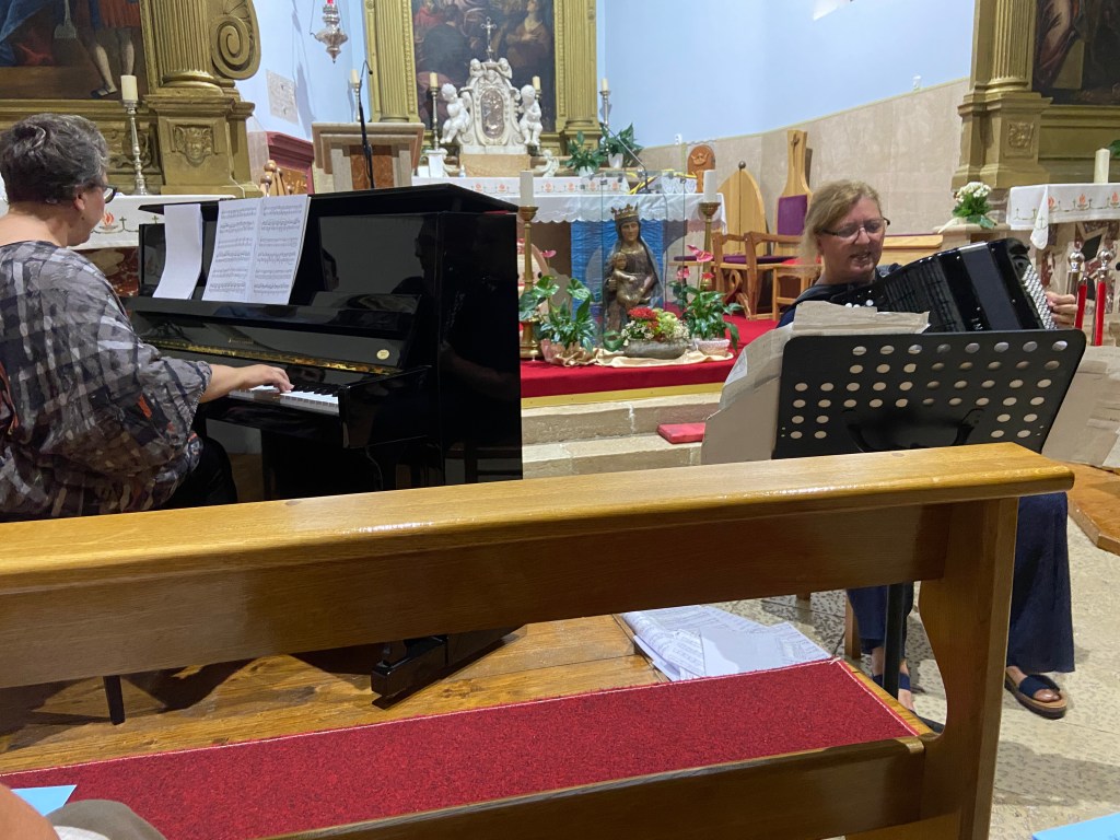 Fažana Sutoni, Twilights, Tramonti – es ist erstaunlich, welch schöne Musik in einem Ort, der dieser Tage von Touristen überschwemmt wird, erklingen kann. In einer kleinen Kirche, mitten im Trubel. Chiesa dei Santa Cosma e Damiano. Mit Iva und Ana Rabar, die Mozart spielten. Violine und Klavier. Zwei ganz junge Musikerinnen. Und mit der Akkordeonistin Mirjana Petercol und der Pianistin Vesna Ivanović Ocwirk. Die Musik von Cesar Franck, August Reinhard, Giuseppe Gariboldi, Petri Makkonen erklingen ließen. Beeindruckend virtuos. Hingebungsvoll mit jedem Takt. Mirjana Petercol hat in Porec (Istrien) studiert und in Pula. Vor allem aber in Deutschland ihr Können ausgebaut. Ihre Akkordeonstudien (Diplom, Künstlerische Reifeprüfung, Solistenstudium) bei Elsbeth Moser an der Hochschule für Musik und Theater Hannover schloss sie mit dem Konzertexamen ab. Es folgte das Master Studium an der Folkwang-Universität Essen. Ausbildungen in Musikermedizin und Bewegungslehre, Elementarer Musikpädagogik und Kirchenmusik. Sie ist Stipendiatin der Richard-Wagner-Gesellschaft und Preisträgerin der „Concorso Citta di Castelfidardo“-Wettbewerbe. Als Solistin und Kammermusikerin wirkt sie mit an zahlreichen Konzerten, Festivals, Uraufführungen, CD-Aufnahmen. Von Oktober an wird sie Dozentin an der Musikfakultät Nürnberg sein.