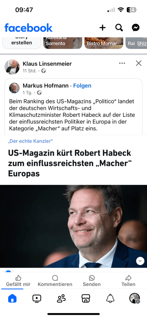 Ich hoffe, Robert Habeck liest das. Ach was: Sicher tut er das. Doch 1.) nimmt man mal das, was US-Präsident Donald Trump und sein fragwürdiger politischer Anhang über den Sinn medialen Schaffens, auch mit Blick auf Politico, wissen lassen (obwohl der Springer-Verlag seine Hand über das Magazin hält) und weiß 2.) was Politico-Rankings vor dem Hintergrund der Besitzverhältnisse an dem Magazin wert sind – dann müsste und sollte der deutsche Noch-Bundeswirtschaftsminister entweder nicht viel auf die Auszeichnung geben oder sie aber, das eher, als eine negative Ehrzuteilung betrachten. Manchmal trägt Lob ja eine Menge politisches Gift in sich. Macher? Im Moment macht RH Wahlkampf.